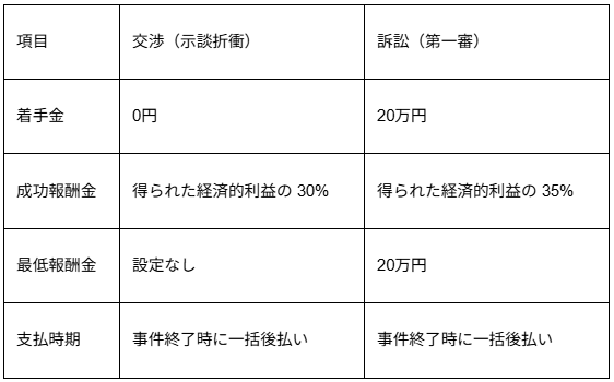 交渉から訴訟へ移行する場合、別途追加着手金が発生いたします。